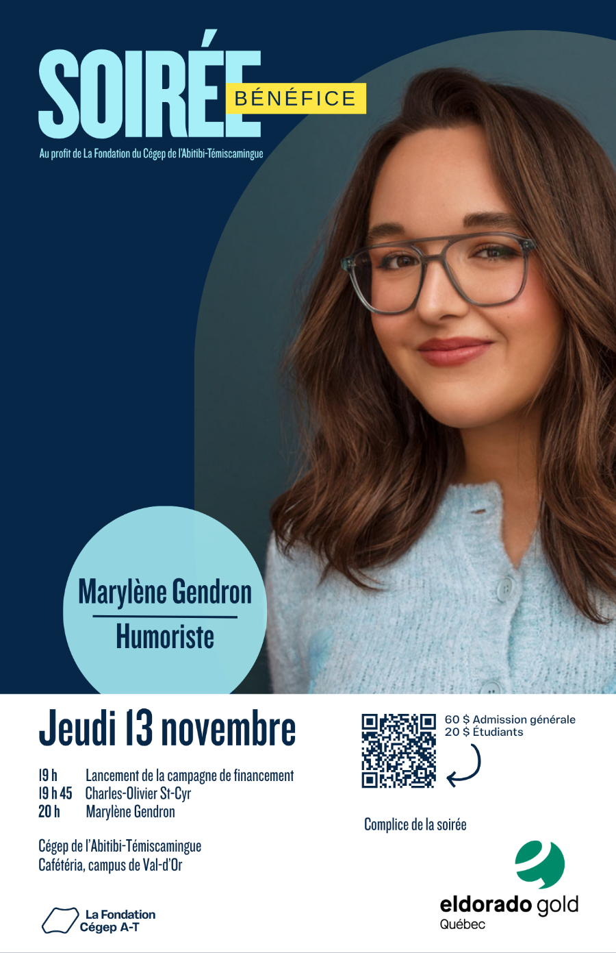 La Fondation du Cégep de l’Abitibi-Témiscamingue vous invite à une soirée-bénéfice sous le signe de l’humour, marquant ainsi le lancement de sa campagne majeure de financement.