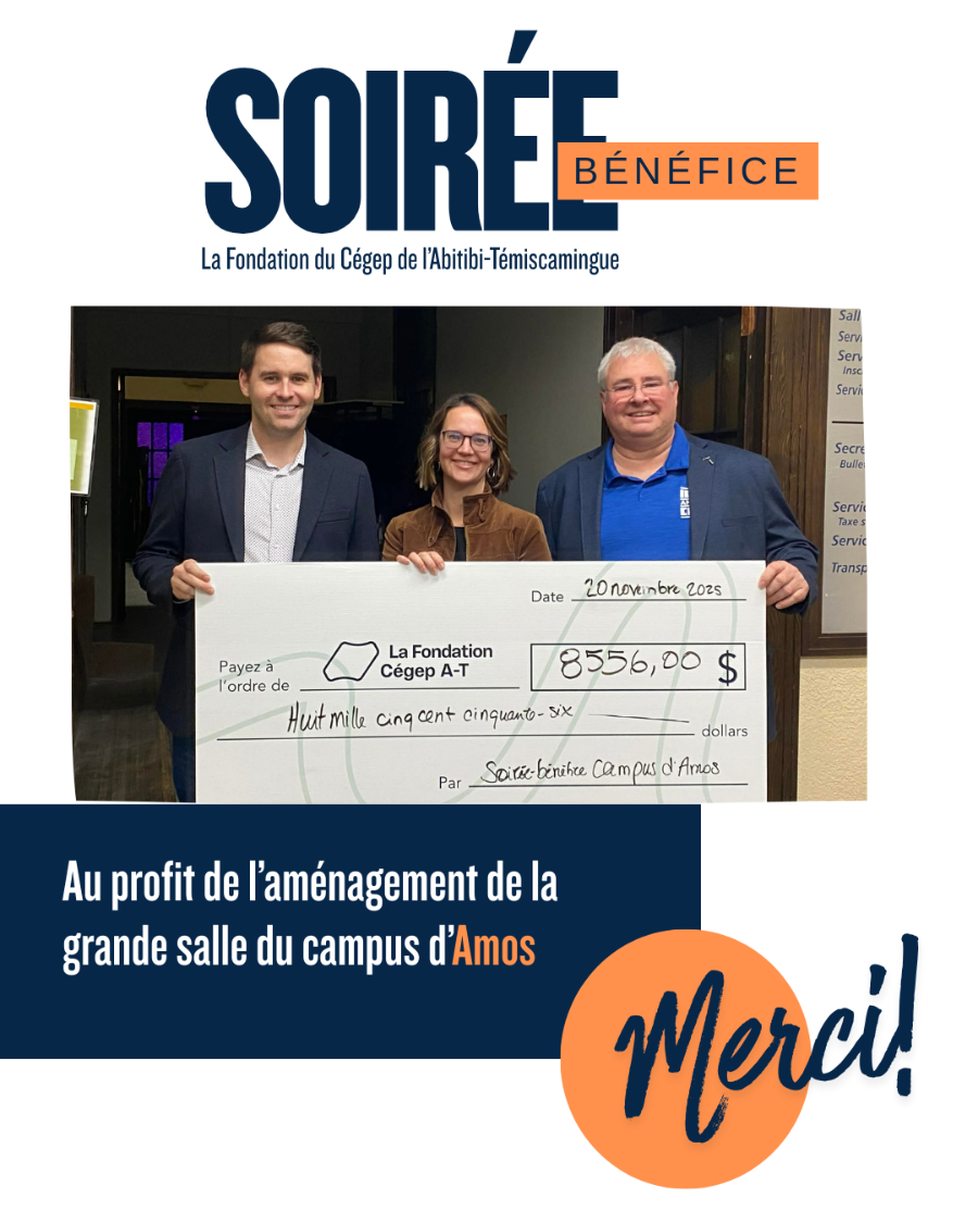 🙏Merci, Amos, de soutenir La Fondation et, par la même occasion, toutes les étudiantes et tous les étudiants du Cégep de l'Abitibi-Témiscamingue.