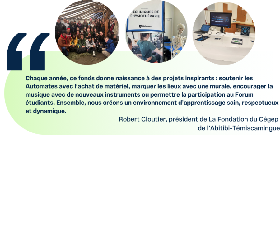 - Encourager l’engagement de la communauté étudiantes et la vitalité du Cégep.