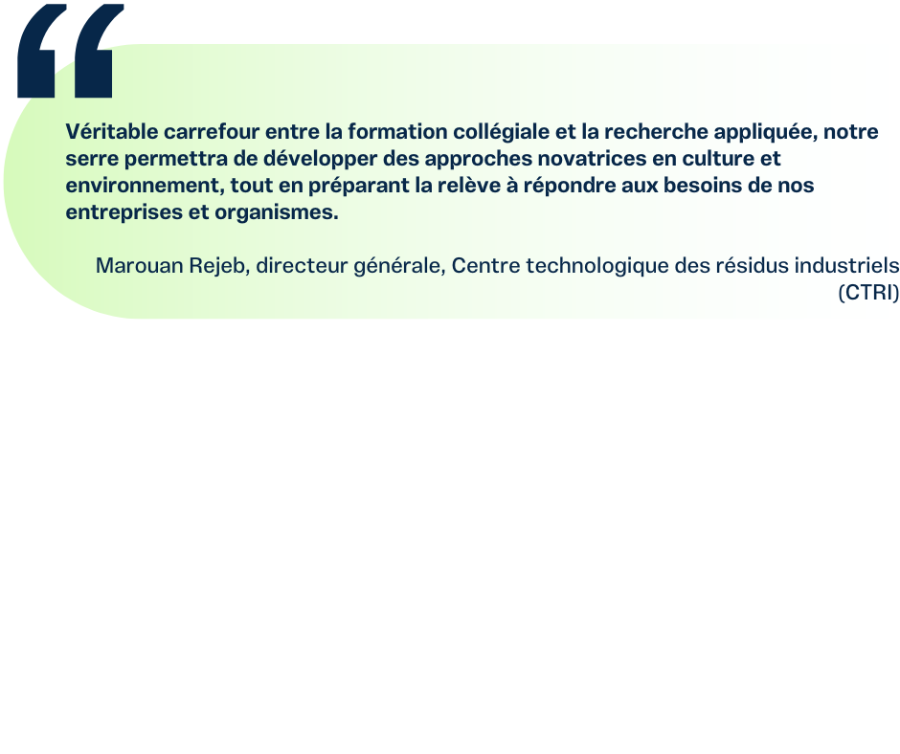 - En plus des activités académiques, la serre offrira un espace dédié aux initiatives étudiantes, aux projets parascolaires et à l’engagement dans des actions concrètes pour l’environnement.