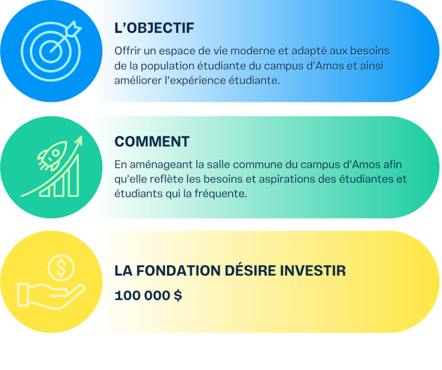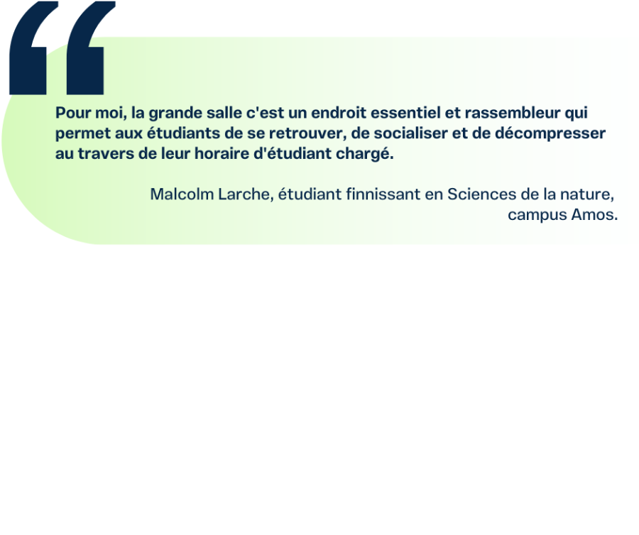 - La Salle commune est un lieu de rassemblement et de socialisation à vocation multiple, au cœur de la vie étudiante du campus d’Amos.